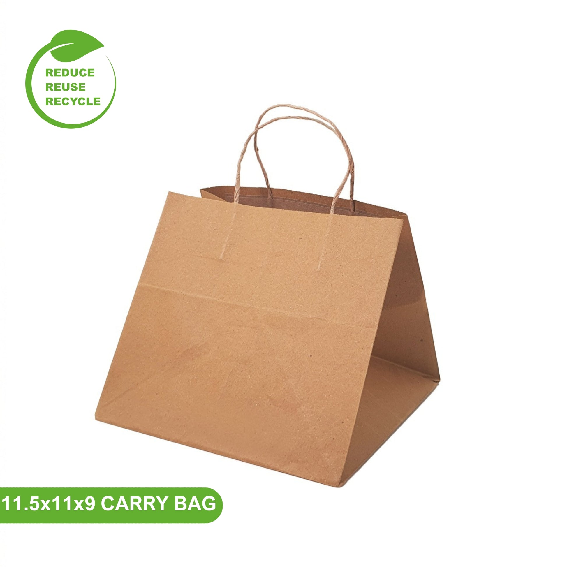 | Usage | cake and pizza bag offers a wide base and strong structure for medium-sized pizzas, cake boxes, and bakery parcels. Its 120 GSM paper ensures load-bearing durability while remaining biodegradable and suitable for premium food takeaway. |