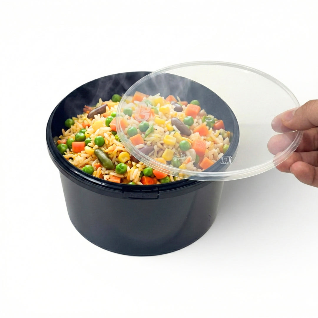 1200ml Black Tamper Proof Flat Round Container with Lid