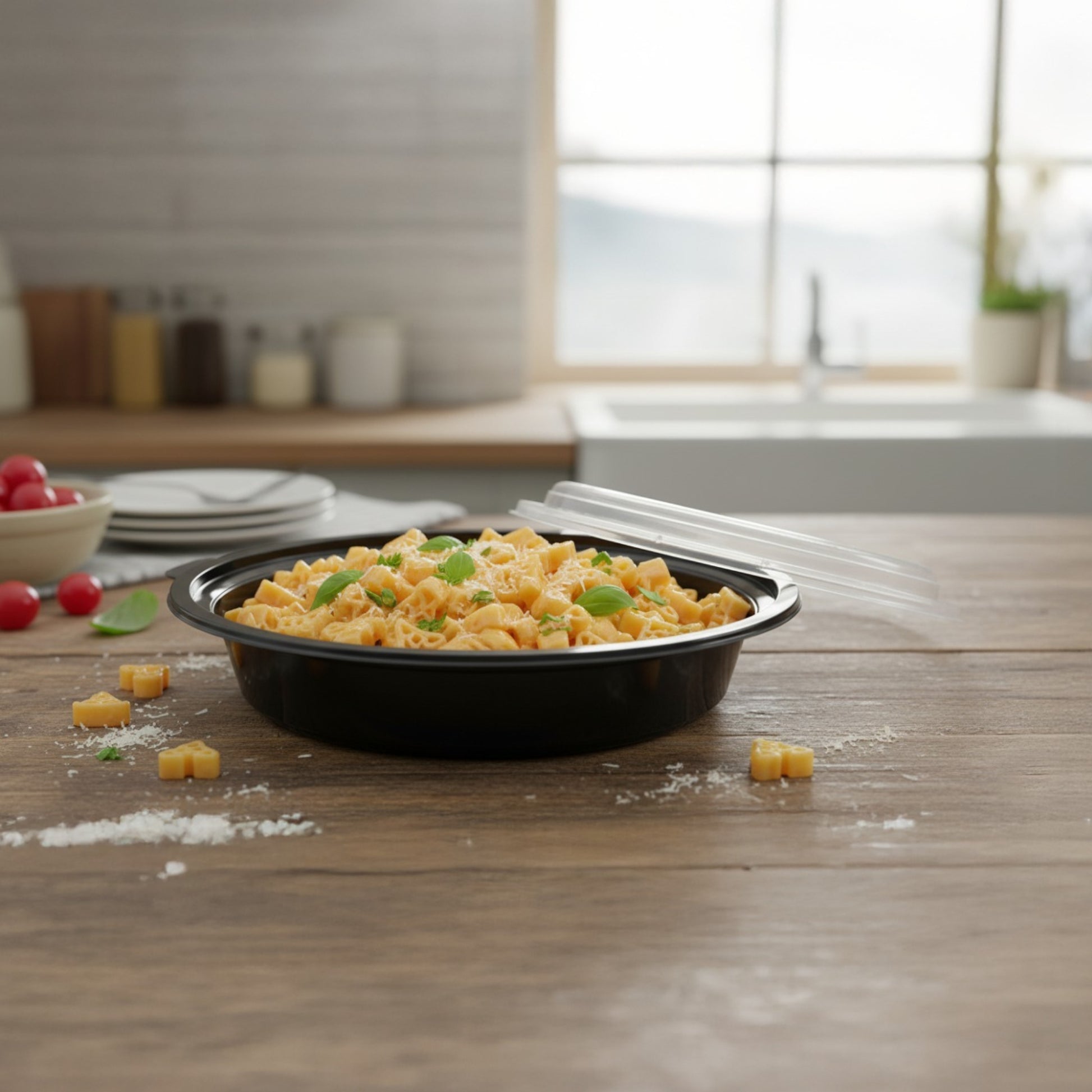 The 1500 ml RO round container is a high‑capacity pack built for large and family‑size servings. Its broad base and strong PP walls handle heavy food weight without bending. The leak‑resistant lid keeps gravies and rice dishes secure even over long delivery routes. Ideal for catering orders, party packs and restaurant family combos.
