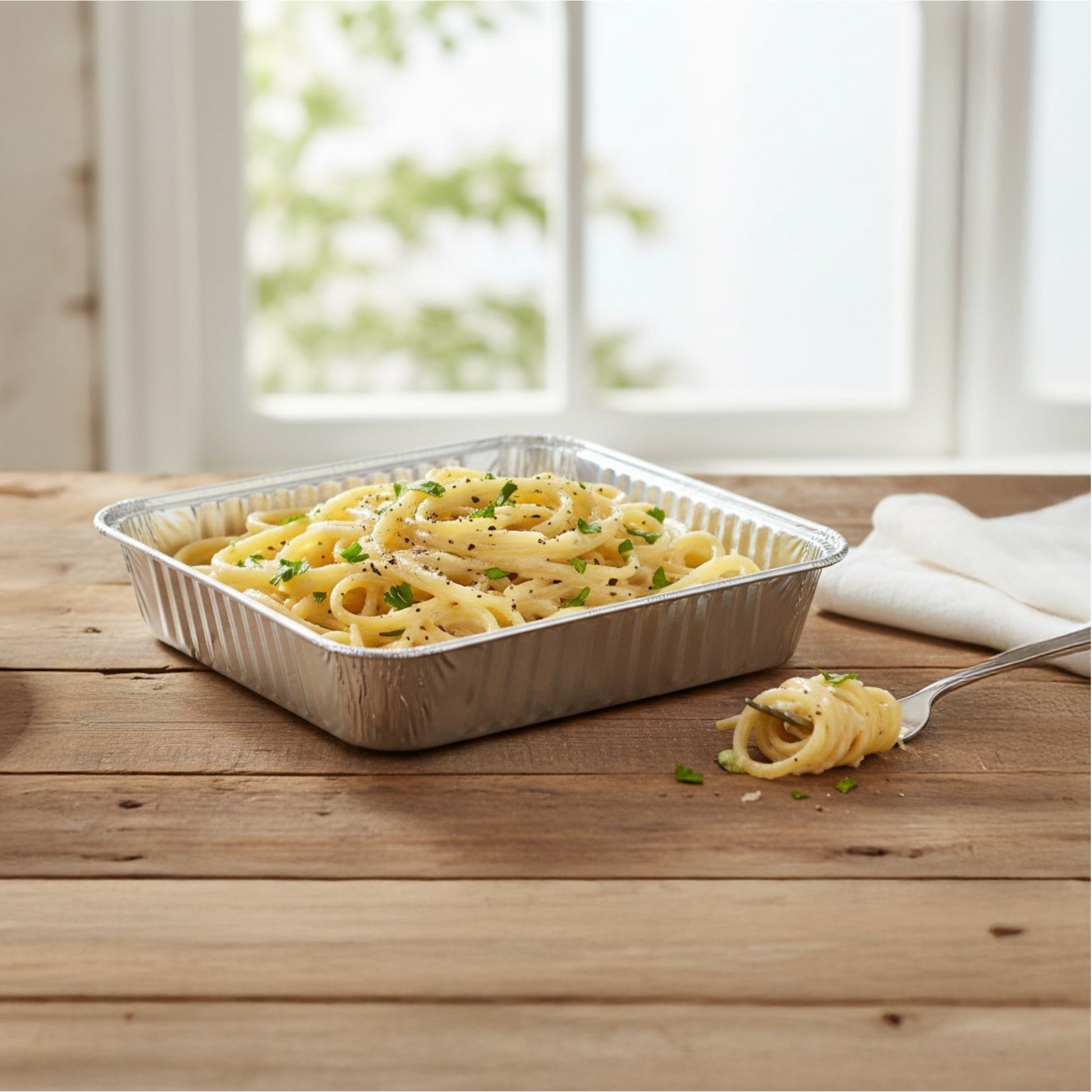 The 2100ML (CODE 992) Foil Container is a deep, heavy-duty aluminium tray designed for large meal portions, catering, baking, and bulk food packaging. Its sturdy structure offers excellent heat distribution, making it ideal for biryanis, roasted dishes, lasagnas, party servings, and oven cooking.