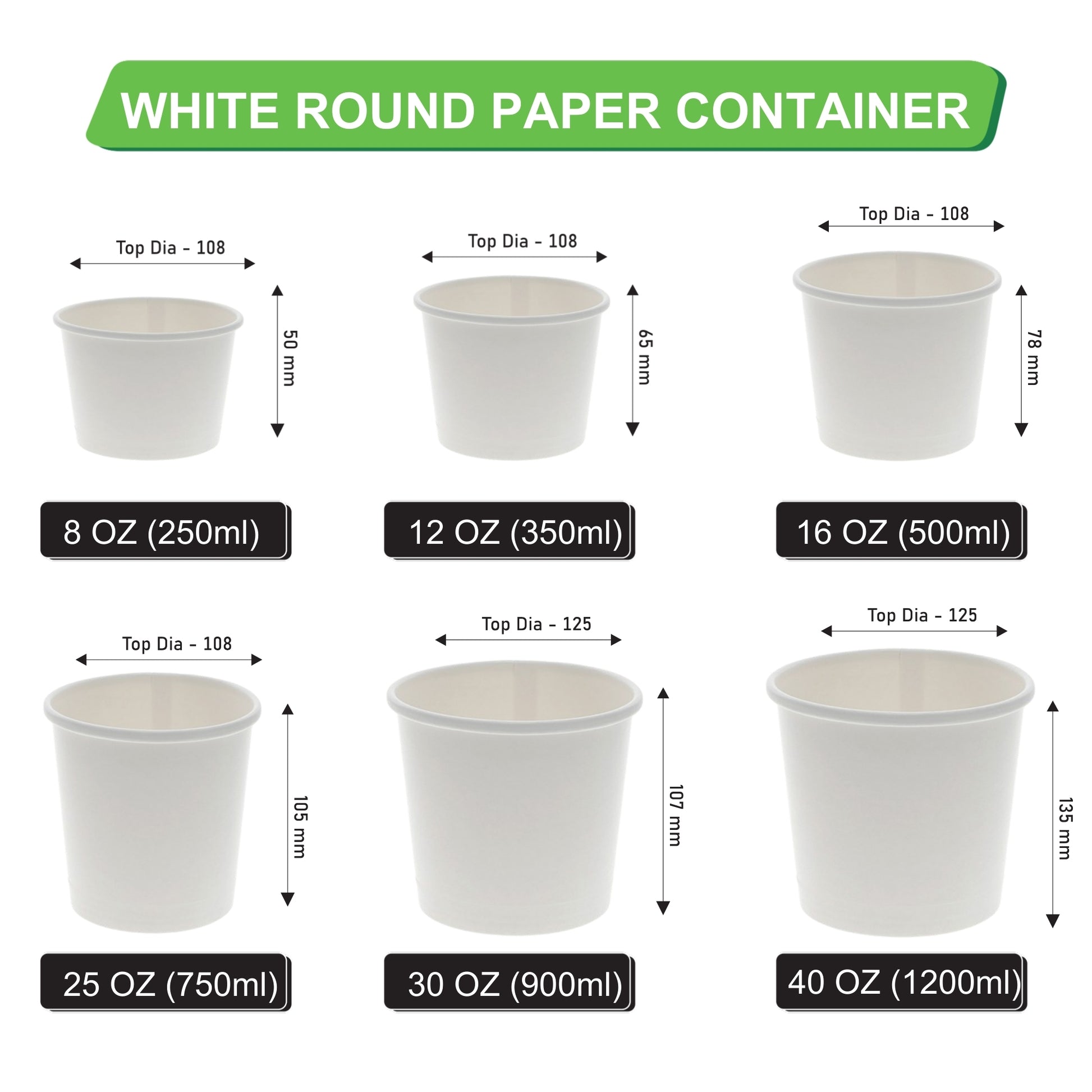 250 ML Round Paper Container designed for QSRs, food chains, and delivery kitchens. Ideal for hot and cold food applications with sturdy construction, leak resistance, and a clean white finish suitable for branding and exports.