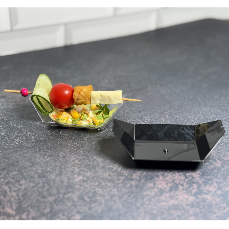 Durable, lightweight cups and trays made from recyclable PS plastic. Perfect for serving desserts, snacks, tastings, and sweets at bakeries and events. Widely used in catering setups.