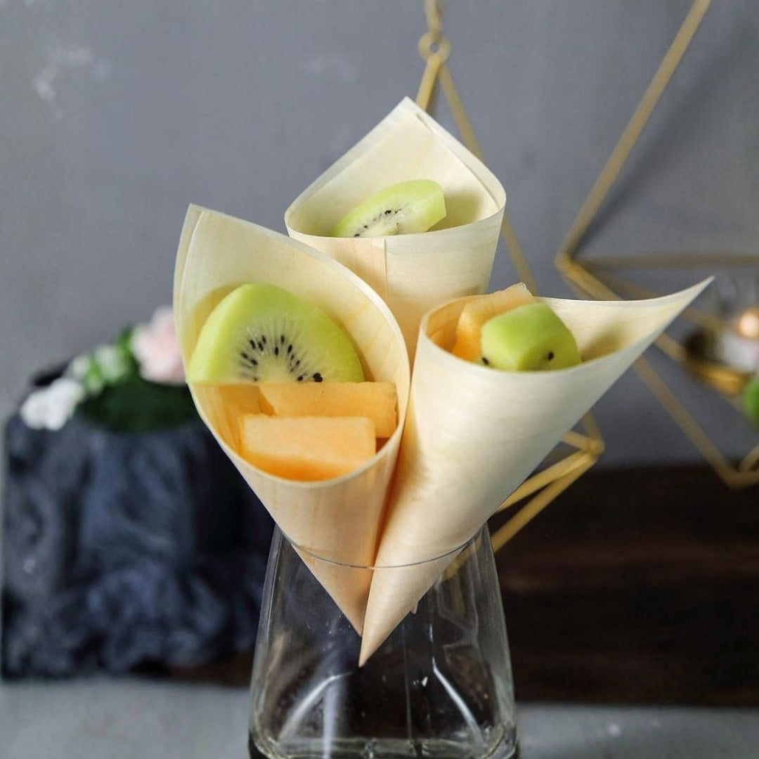 5 Inch Pinewood Serving Cone is an eco-friendly disposable serving solution made from natural pinewood. Also known as wooden serving boat, pinewood tray or wooden snack holder, it is ideal for fries, finger food, street snacks used in QSRs, cafes, food festivals, catering and takeaway counters. It adds a premium natural look while supporting sustainable food service.