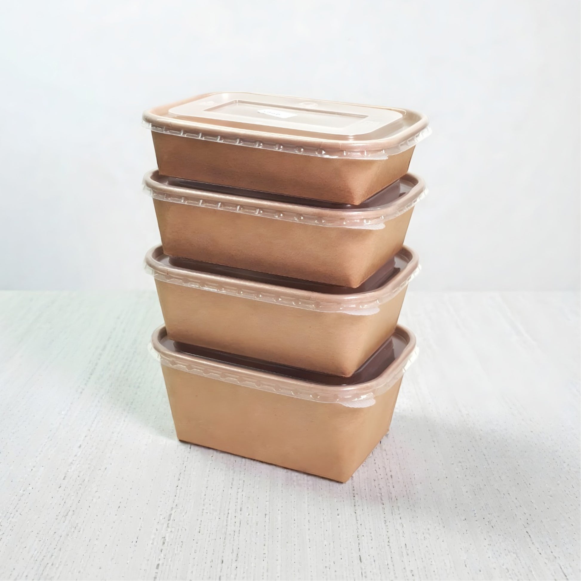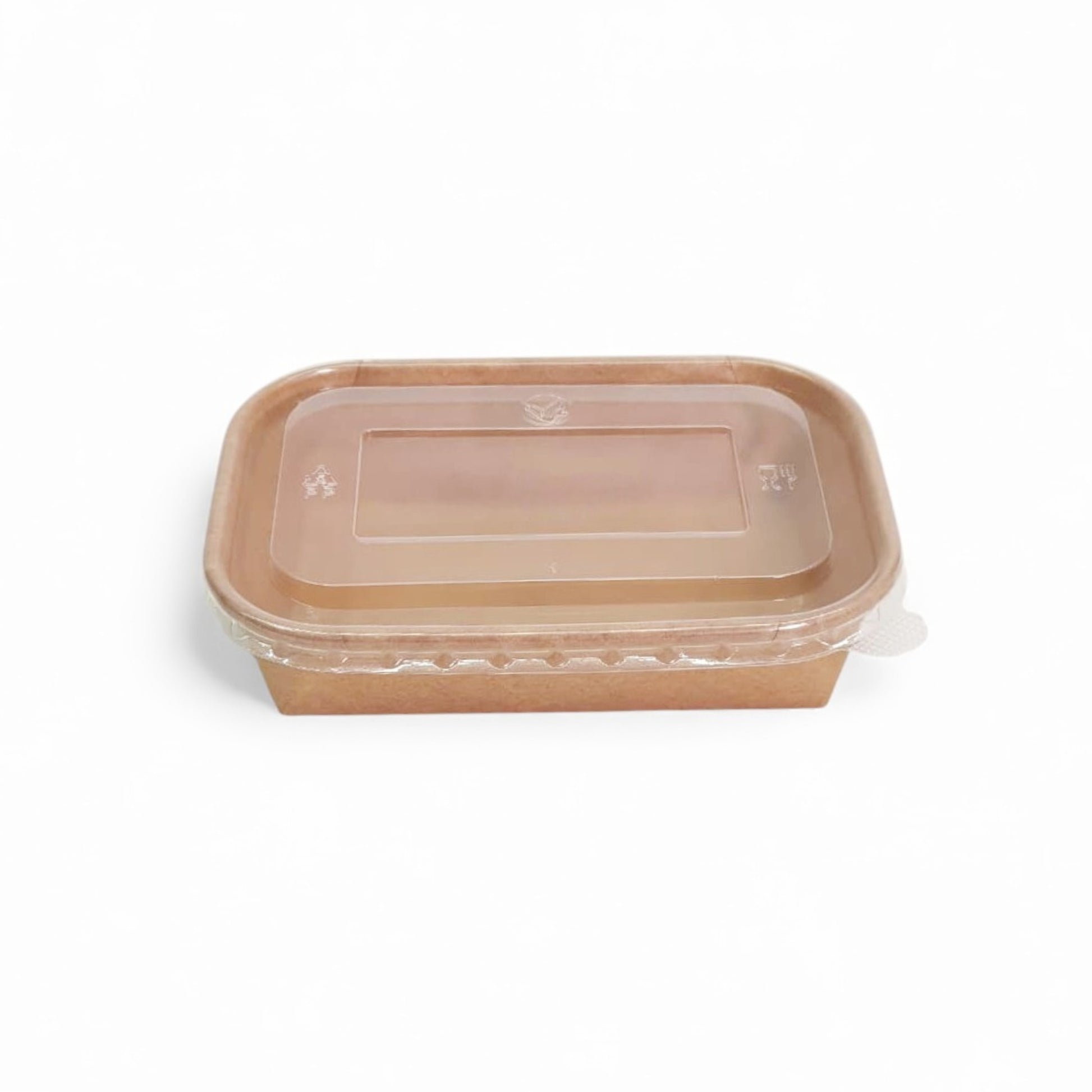 A 500 ml rectangular kraft paper container ideal for salads, snacks, sandwiches and desserts. Made from sturdy 295 GSM board, it offers rigidity and resistance to heat and moisture. Suitable for takeaway meals, catering and eco-friendly packaging.