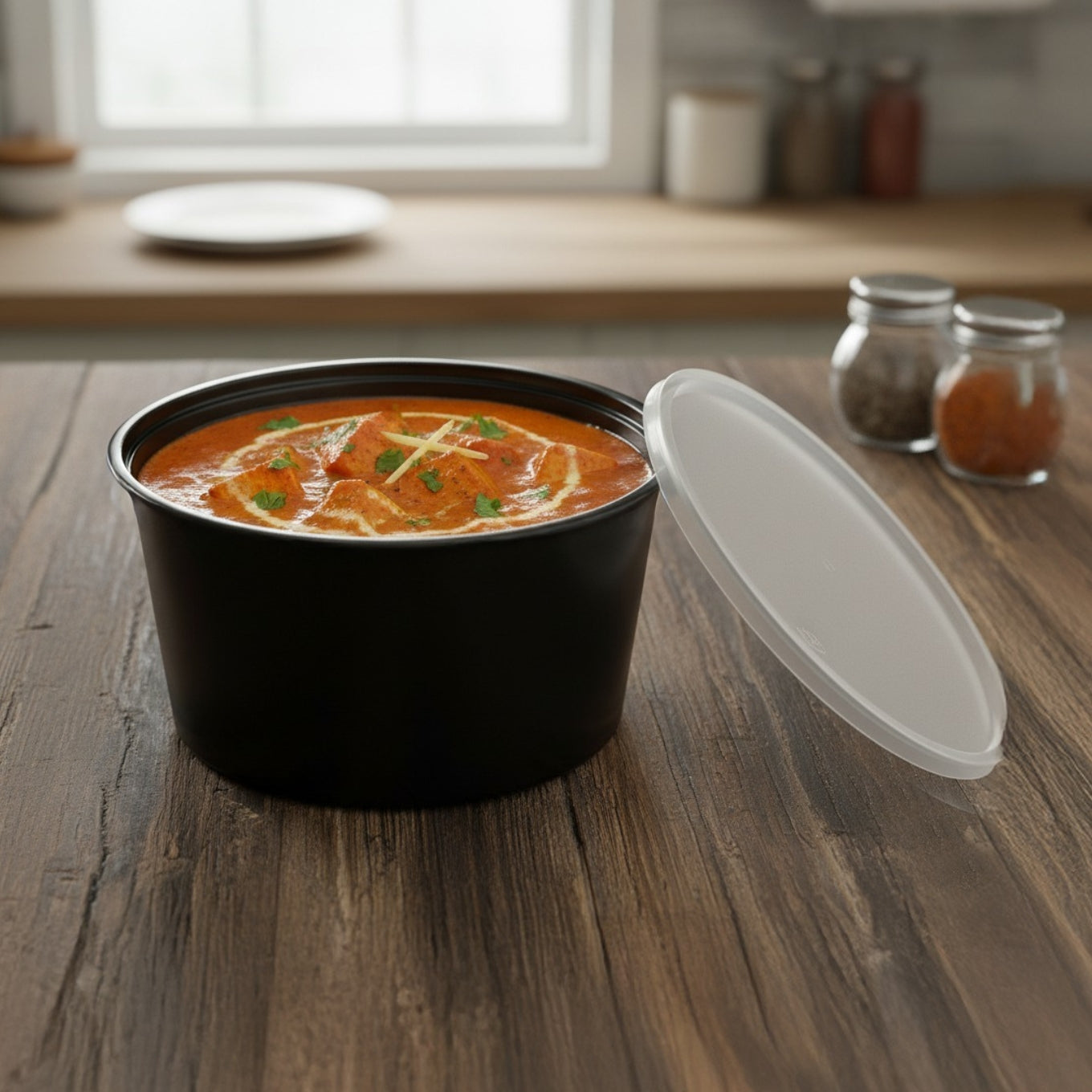 The 500 ml XL Round container offers extra height for layered dishes and larger portions. Its leak‑proof lid ensures safe delivery of meals with sauces or toppings. Microwave‑safe, freezer‑safe and widely used for premium takeaway meal bowls.