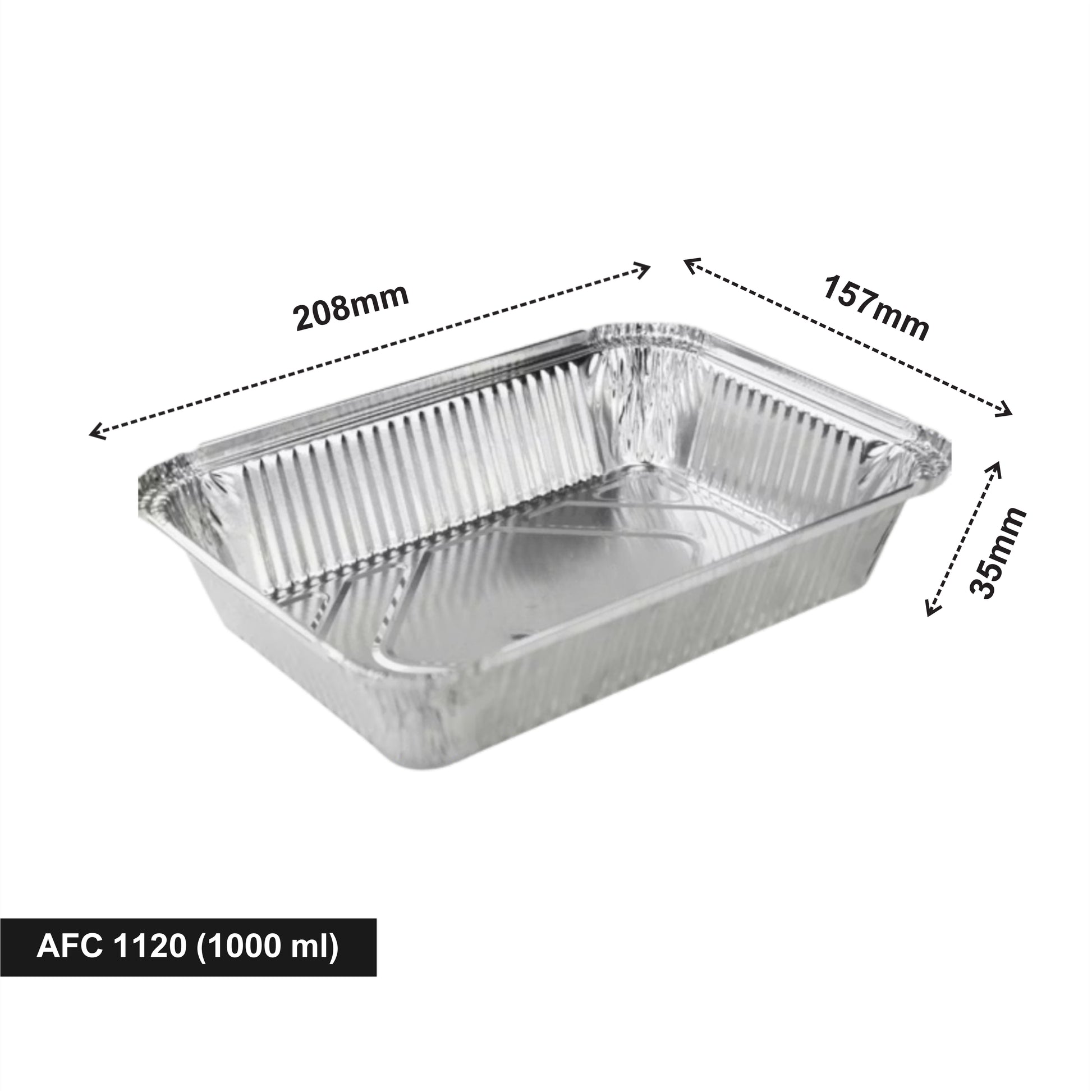 The AFC 1120 (1000 ml) Foil Container is a sturdy, medium-sized aluminium tray ideal for packing full meals, biryanis, pasta, gravies, and baked dishes. Designed for strength and heat retention, it provides reliable performance for delivery, takeaway, and catering.
