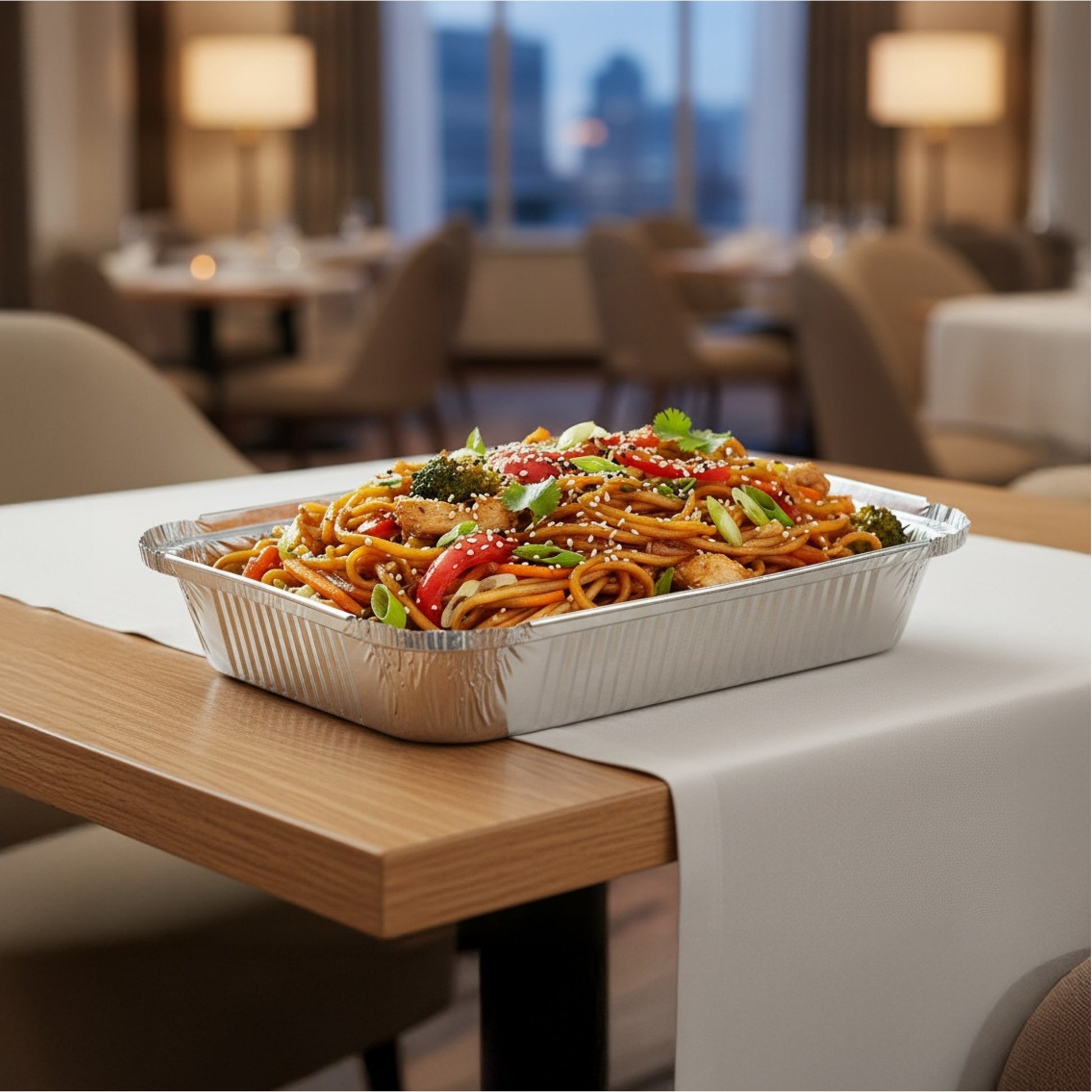 | Usage | Ideal for restaurants, cloud kitchens, caterers, and banquet services to pack biryani, pasta, noodles, rice meals, roasted meats, gravies, desserts, and bulk servings. Suitable for oven baking, reheating, storage, delivery, and takeaway. |