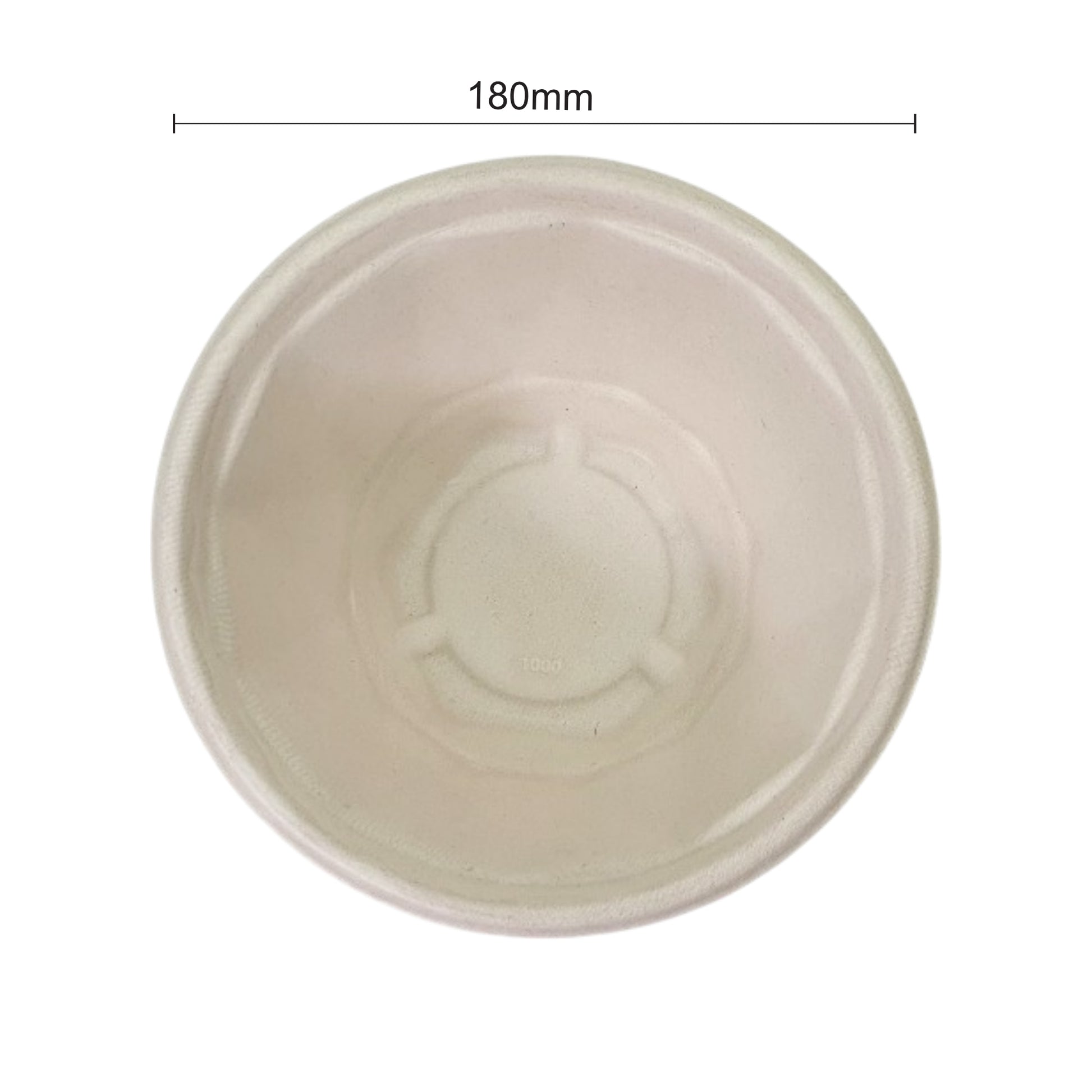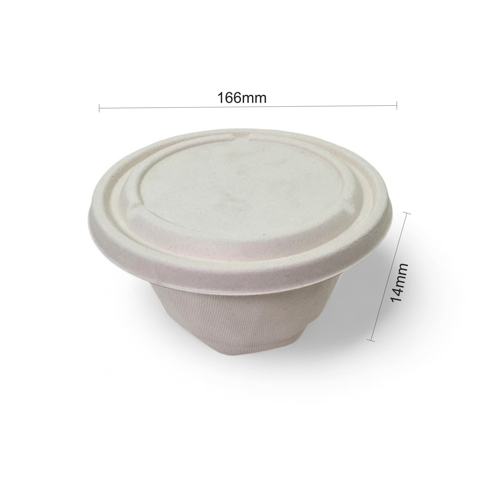 Extra-large 1000ml round bagasse bowl for bulk meals, curries, or family servings. Compostable, strong, and sustainable. Lid designed for 1000ml bowl, ensuring safe transport of large food portions. Compostable and spill-resistant.