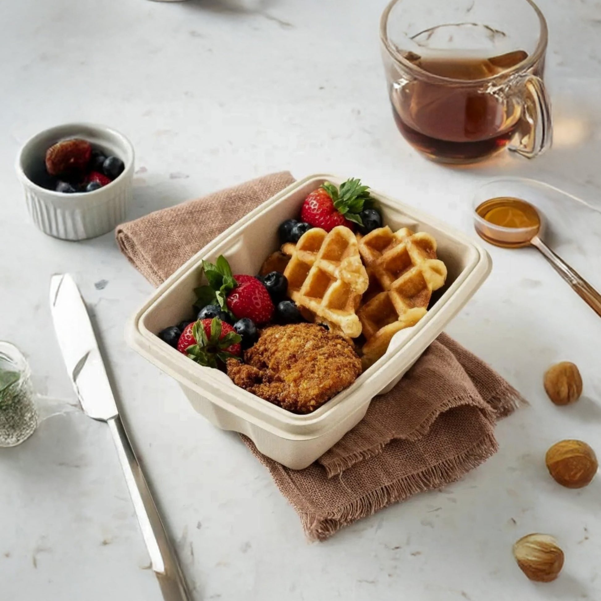 - Fully compostable and microwave safe