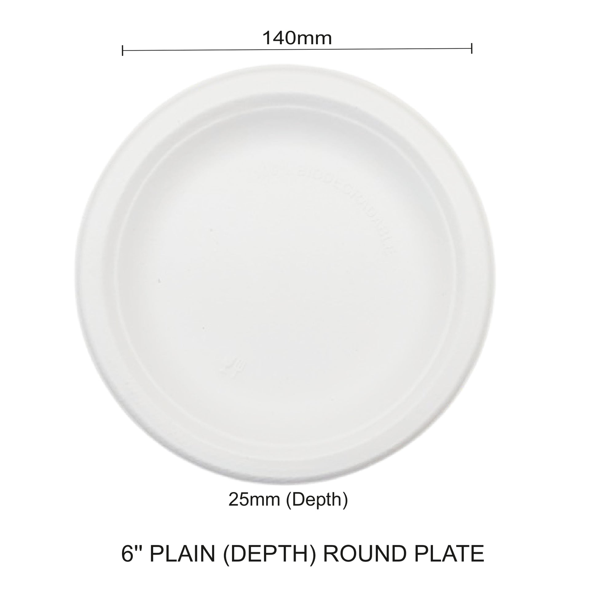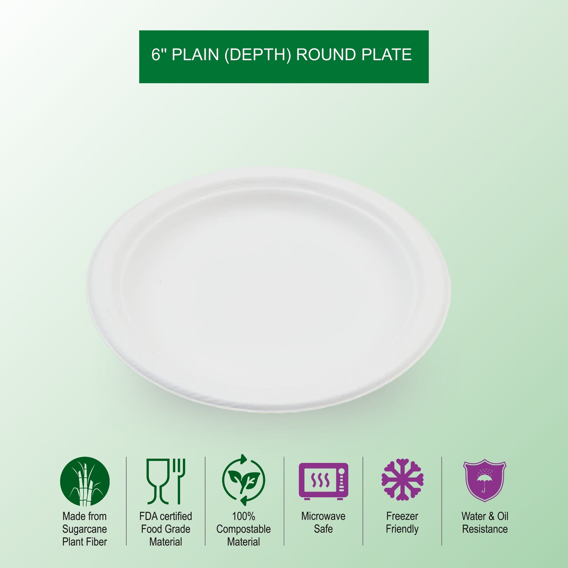 The BW 6" Depth Round Plate is an eco-friendly 6-inch round bagasse plate made from natural sugarcane pulp. Perfect for serving snacks, desserts, and small meals at parties, events, or for everyday use, sustainable, leak-resistant, and fully compostable.