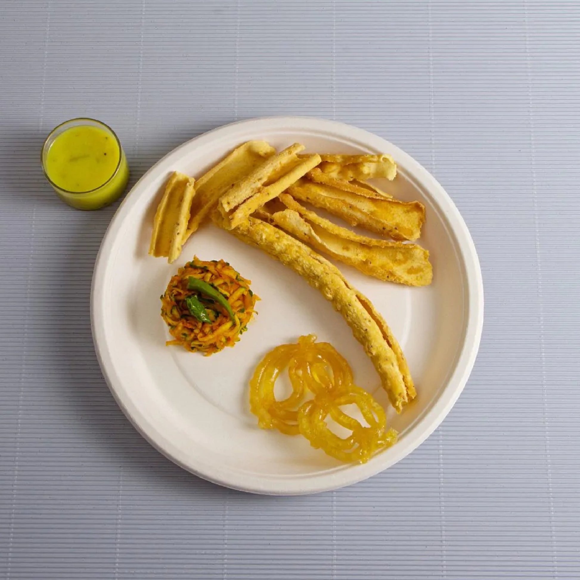 An eco-friendly 9-inch round plate made from natural bagasse. Designed for gravy dishes, rice bowls, and curries, leak-resistant and compostable.