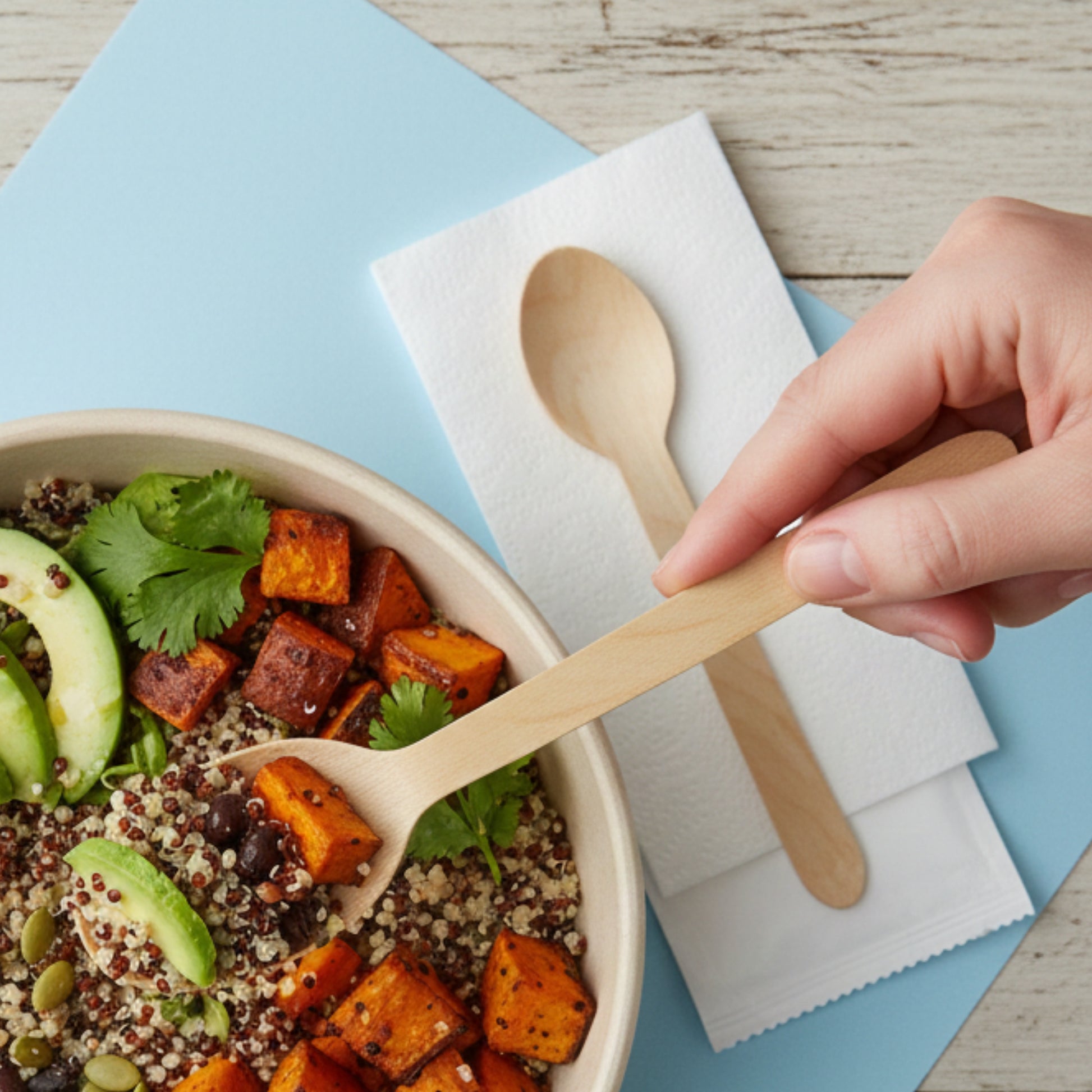 Eco-friendly wooden cutlery set designed for hygienic and convenient food service. Manufactured using food-grade natural wood, these cutlery sets are ideal for takeaway meals, QSRs, and catering. They provide a sustainable alternative to plastic while maintaining strength and usability. Suitable for restaurants, cloud kitchens, food trucks, and events.