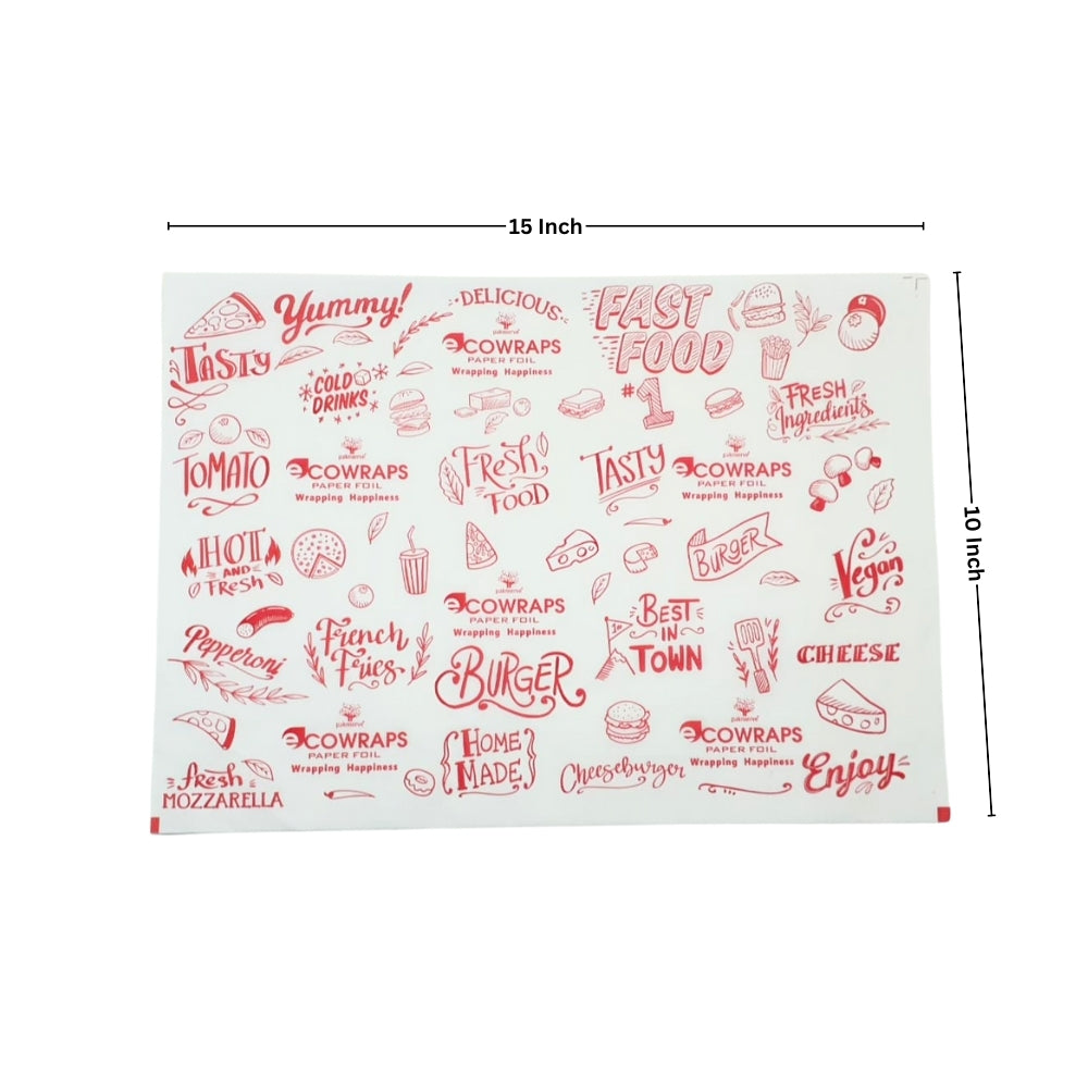 Ecowrap Cut Sheet / butter paper 10 x 15 Inch (250 Sheets) is designed for hygienic food wrapping and takeaway packaging. Ideal for wrapping burgers, bakery, food trays in QSRs, bakeries, and cloud kitchens. Offers grease resistance and clean food presentation.