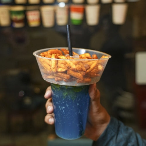 The Freyo Tower fits perfectly on Paknserve sipper glasses (250 ml, 300 ml, 350 ml to 500 ml, 85-dia) and allows you to serve snacks on top and beverages below in one smart setup. Available in Clear and Black, it is ideal for cafés, QSRs, food trucks, and events to create attractive combo servings while saving counter space.