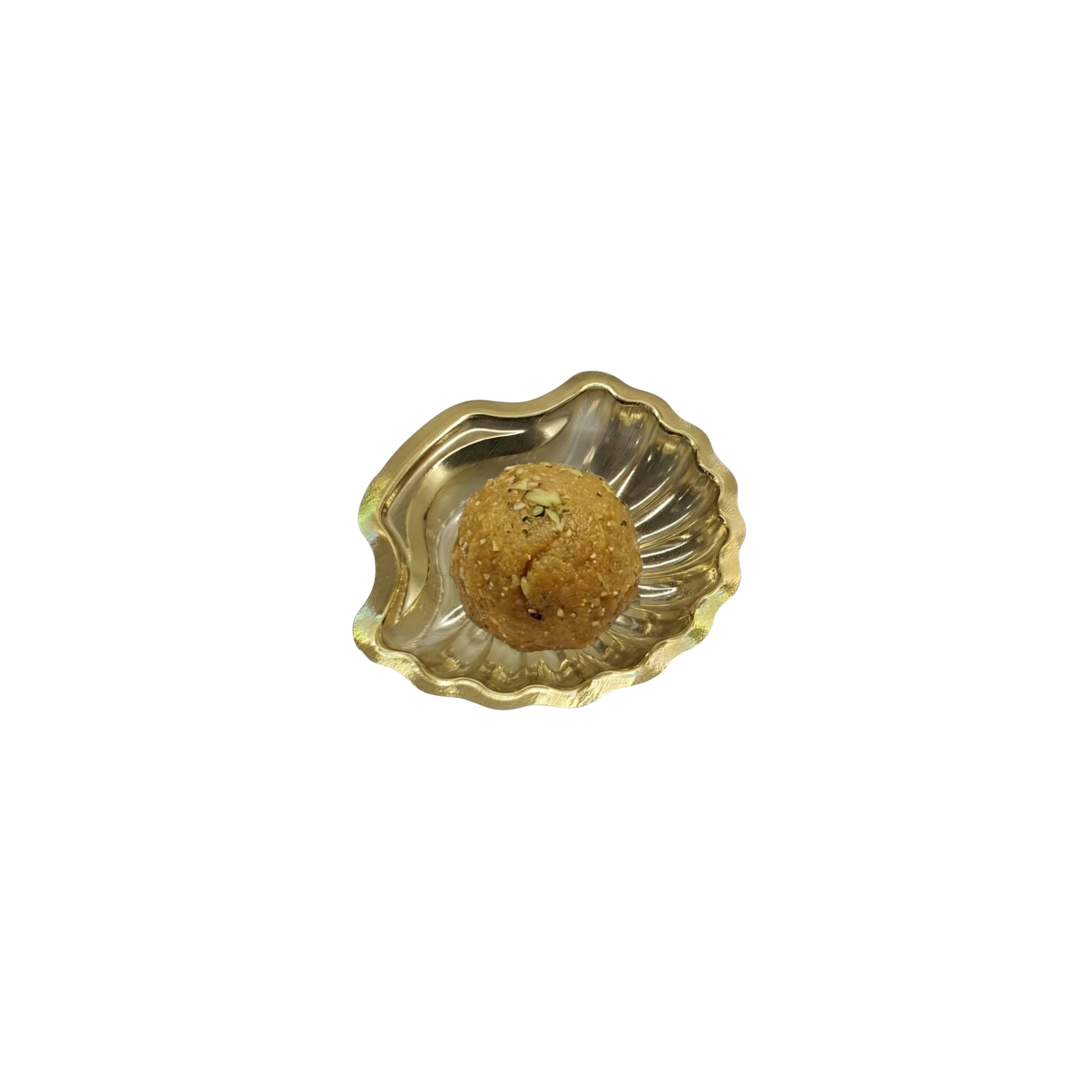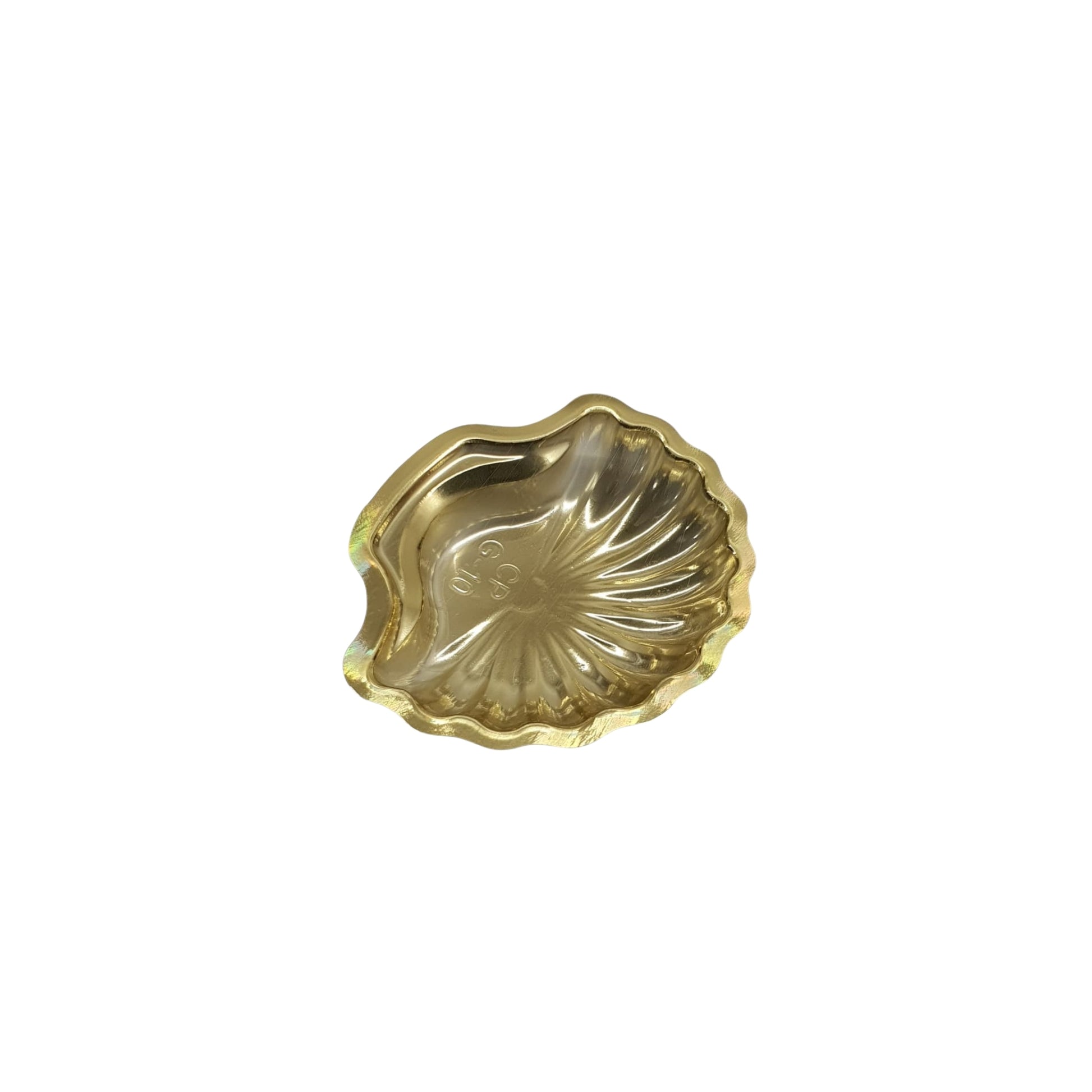 Small shell shaped golden tray ideal for single serve desserts and sweets. Decorative design adds premium look to counters and displays.
