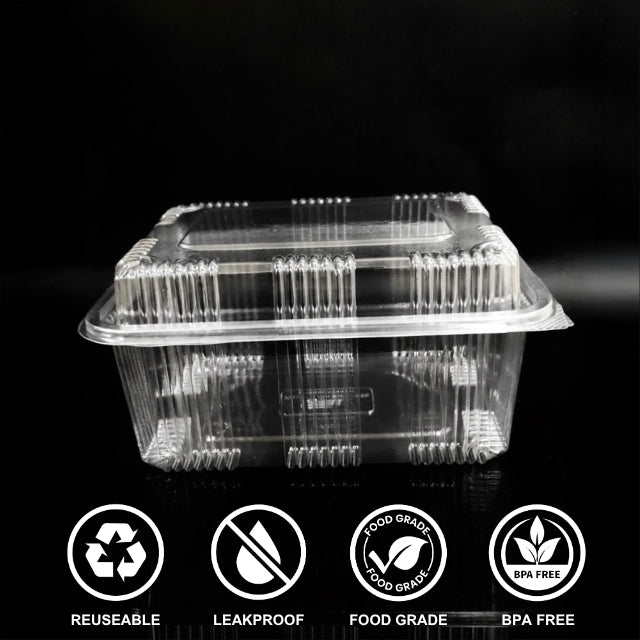 A spacious 1000 ml high-lid hinged box designed for bulk food packaging, offering secure sealing, excellent visibility, and extra height for large or delicate items.