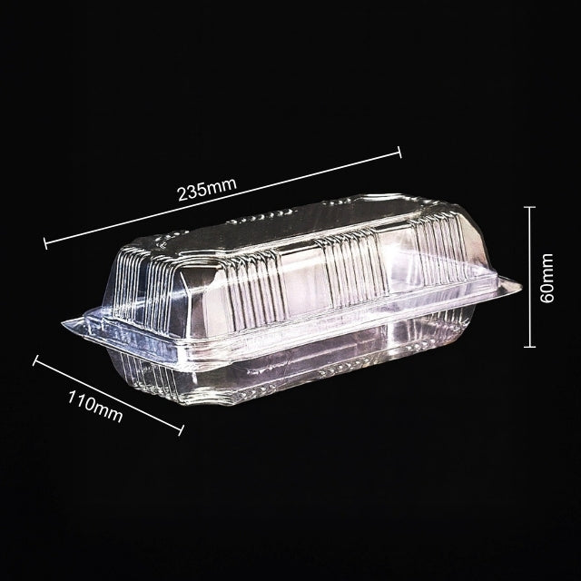 A long, spacious hinged box designed for secure, hygienic, and elegant packaging of large cakes, loaf cakes, pastries, and premium bakery items with excellent clarity.