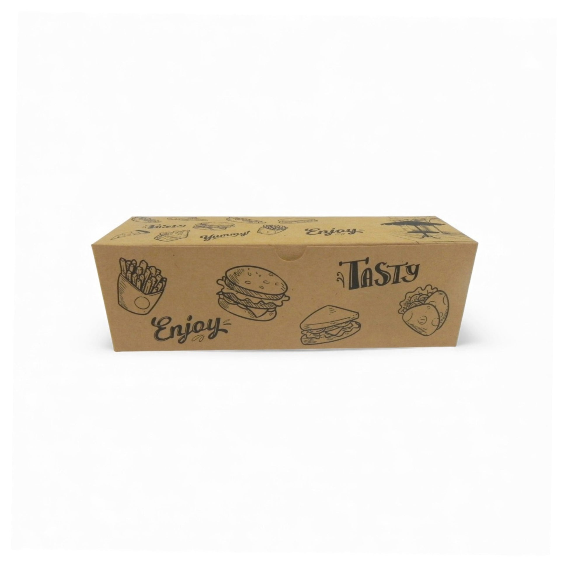 Small kraft wrap box with inside lamination designed for wraps and rolls. Maintains food freshness and prevents oil seepage, making it suitable for fast-moving QSR takeaway counters.
