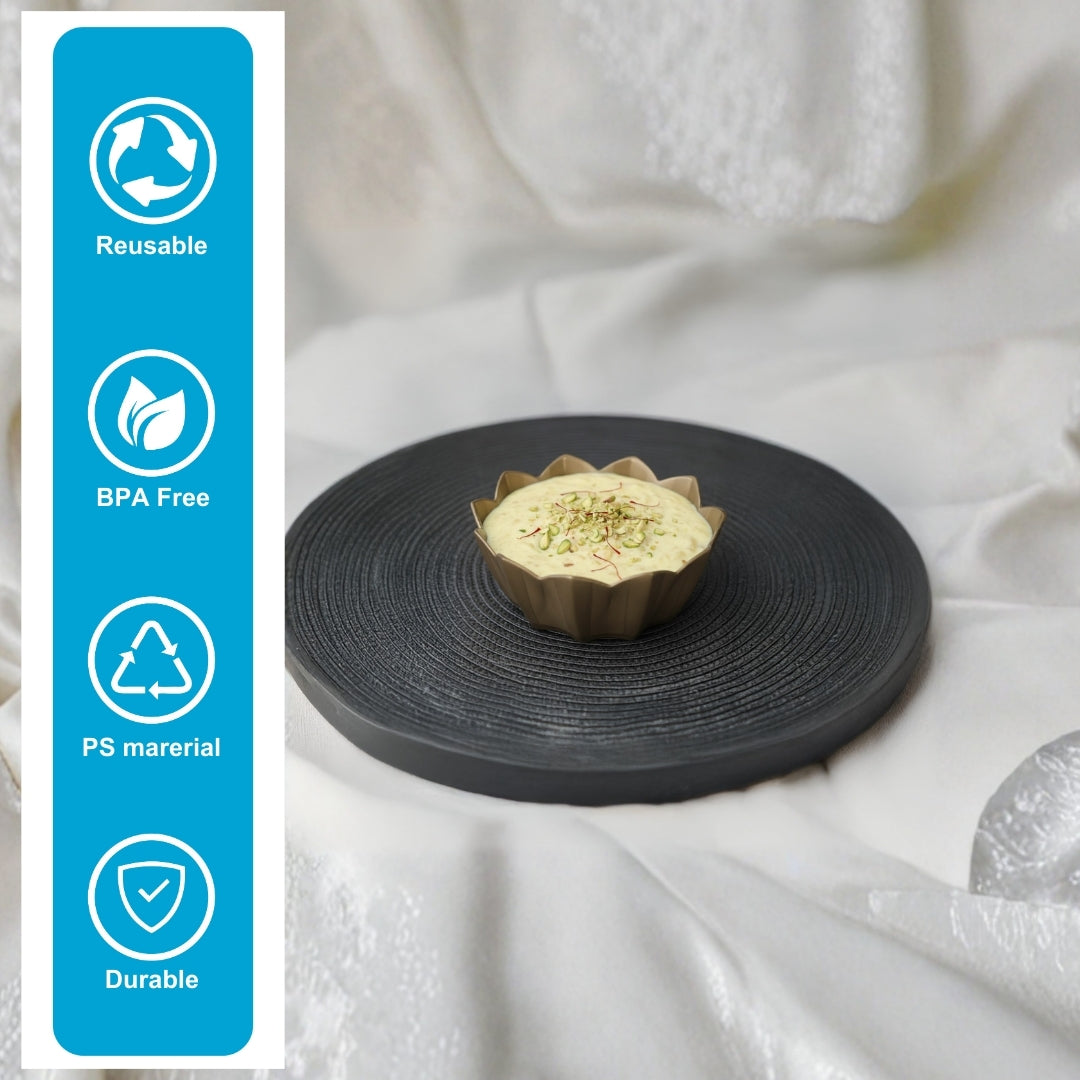 Decorative flower-shaped dessert wati designed for premium dessert portions and festive servings. Ideal for mithai, mousse, and mini desserts in bakeries and catering.