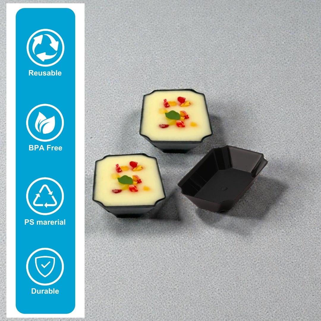 | Usage | Serving Desserts, mithai, mousse, jelly, ice cream, starters and dessert at catering, bakery, cafes |