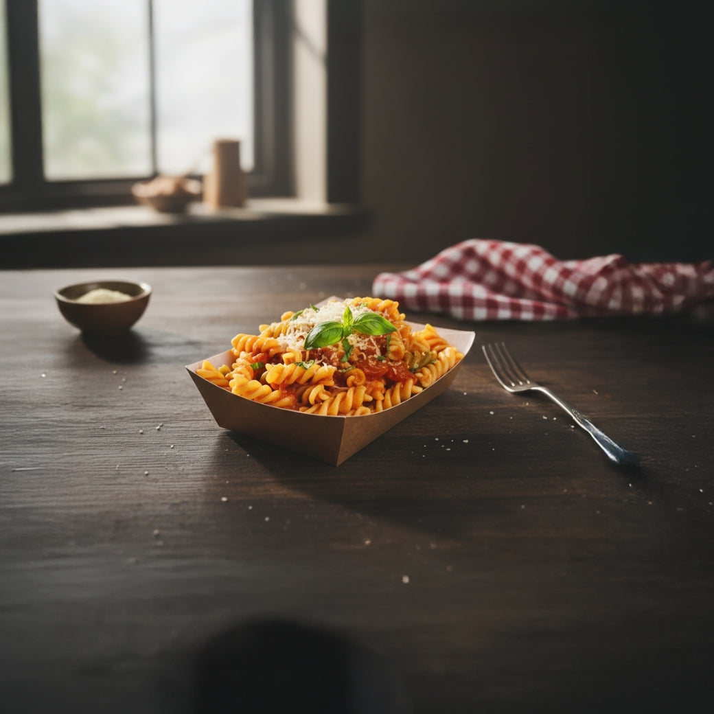 PNS 500ml Paper Tray designed for hygienic takeaway and food delivery. Suitable for snacks, loaded fries, starters with strong structure and easy handling. Ideal for QSRs, cafes and cloud kitchens.