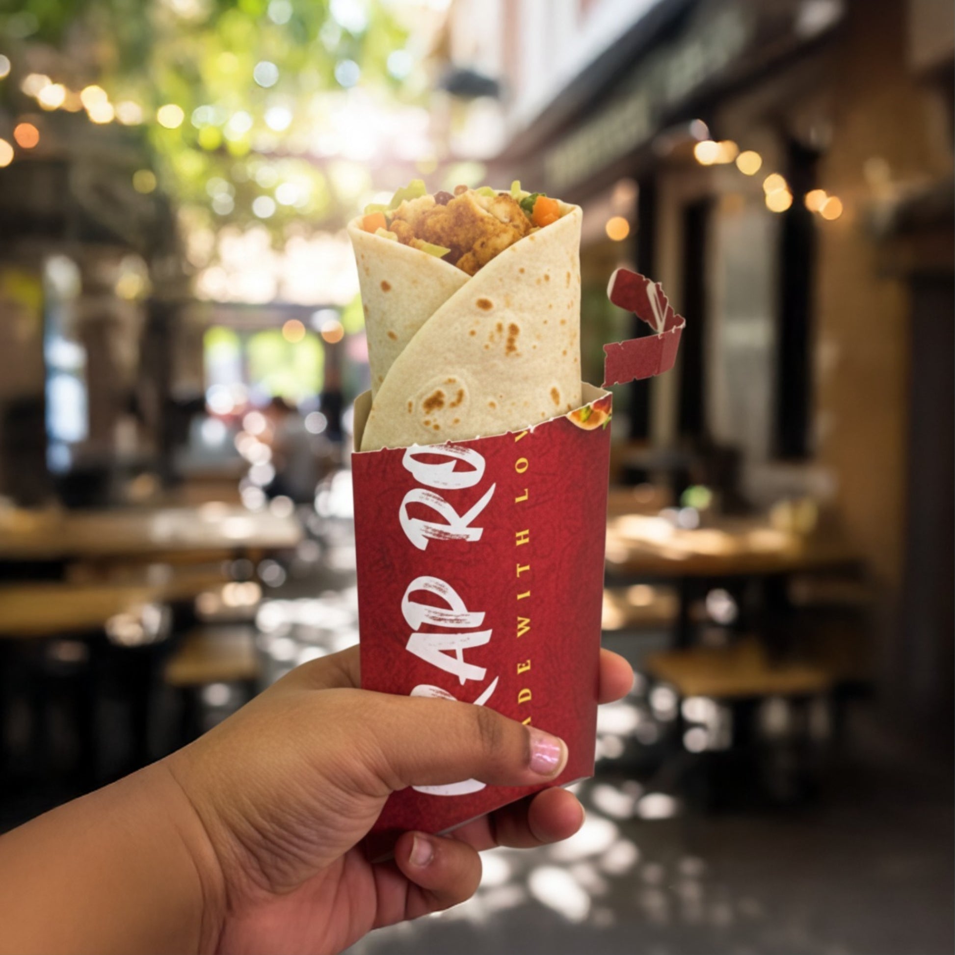 Wrap roll box designed for wraps, rolls, and frankies ensuring clean packing and fast service.