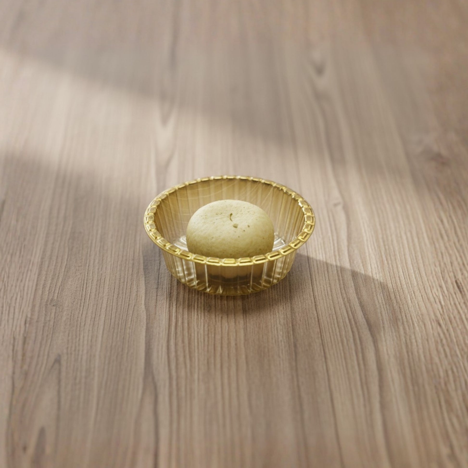 Round Golden Wati No.6.5 is designed for serving traditional Indian sweets and desserts. The round shape and golden finish enhance food presentation while maintaining durability. Ideal for sweet shops, dessert counters, and festive packaging.