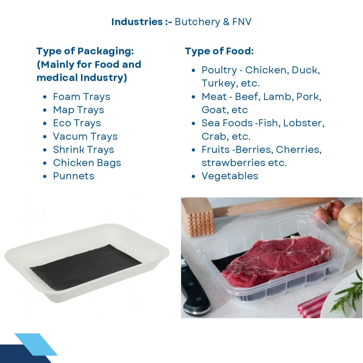 Absorbent soaker pads designed to keep packaged meat, poultry, seafood, fruits, and vegetables clean and dry. These pads effectively absorb excess liquid, improving hygiene, shelf life, and product presentation. Ideal for butcheries, food processing units, retail trays, and export packaging.