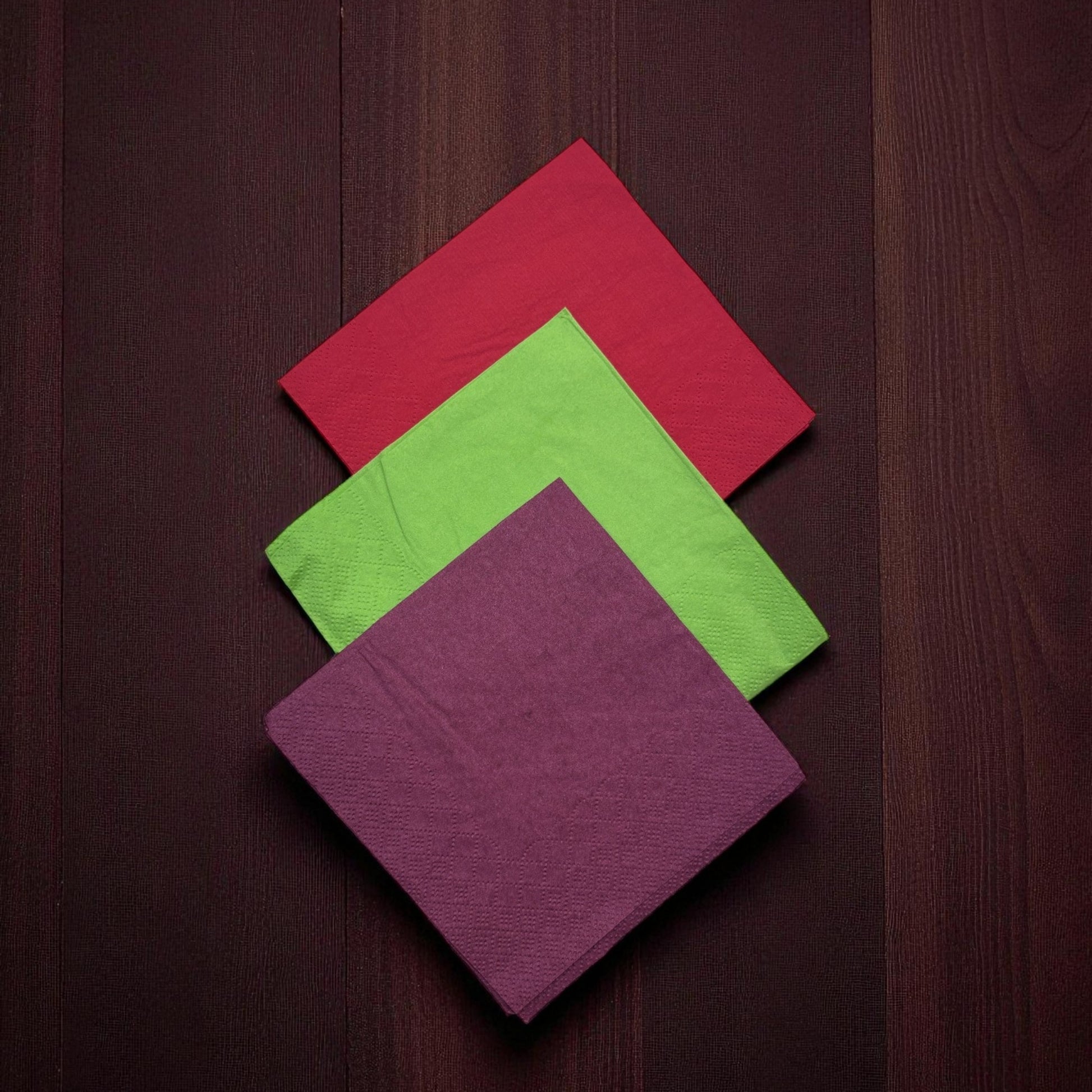 2 ply color tissue adds vibrancy to food presentation and table setups. Suitable for themed cafes, events, and festive occasions. Combines utility with visual appeal.
