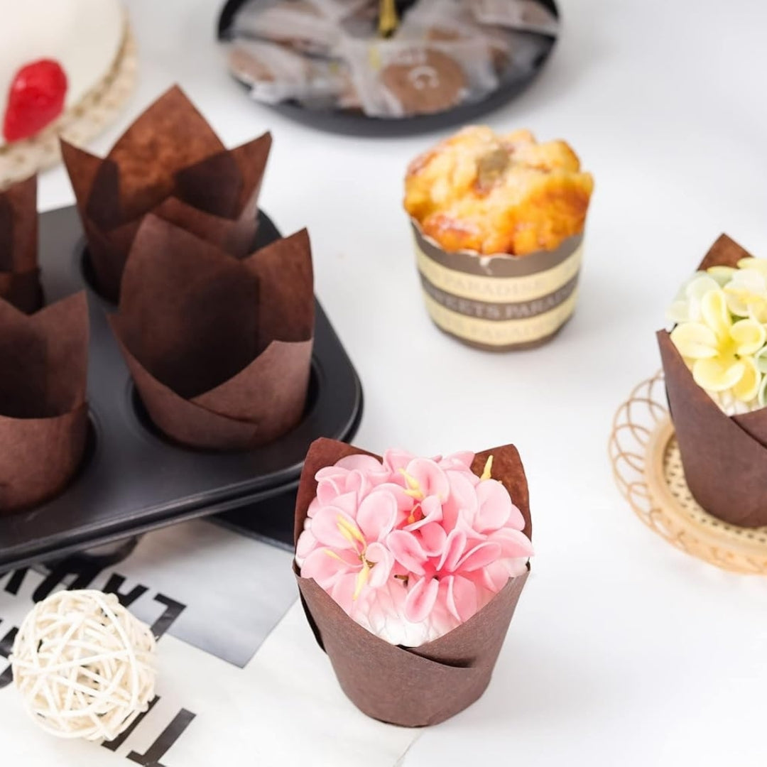 Tulip Muffin Brown & Brown Printed made from food-grade baking paper, suitable for baking and serving muffins, cupcakes and desserts. Ensures even baking, clean release and professional presentation for bakeries, cafés and commercial kitchens.